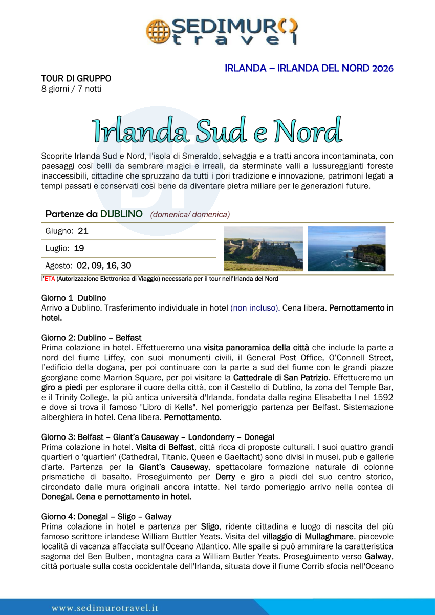 Irlanda Sud e Nord da Dublino 8 giorni