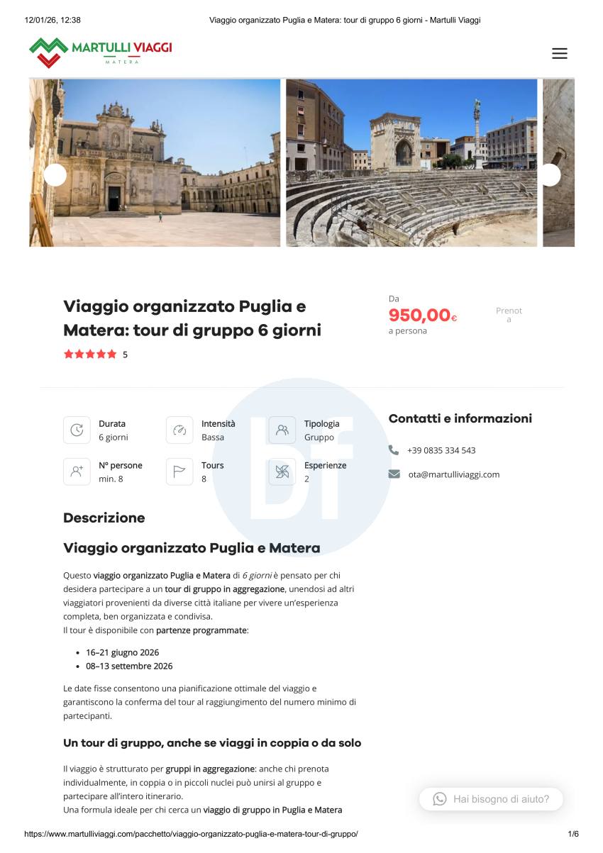 Viaggio organizzato Puglia e Matera: tour di gruppo 6 giorni